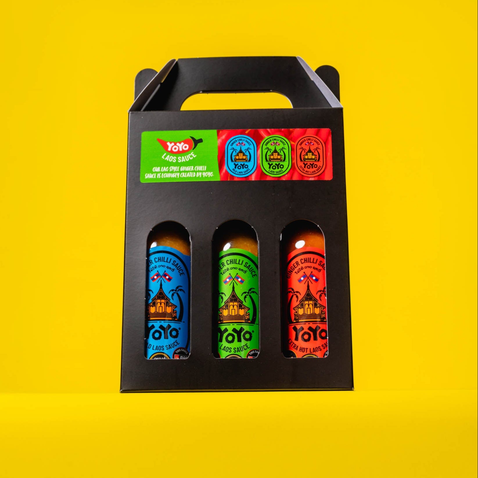 150ml Original, Mild and Extra Hot in a gift box. All my ginger chilli range can be used for dipping, marinade, stir fry or adding to salad. Mild has a low level of heat from fresh ginger, original is medium- medium hot and extra hot is packed with birds eye chillis for those who like to really like to turn up the heat levels. Original & Extra Hot both Great Taste Award Winners & my original Ginger Chilli Sauce won the UK National Chilli Awards in 2022.