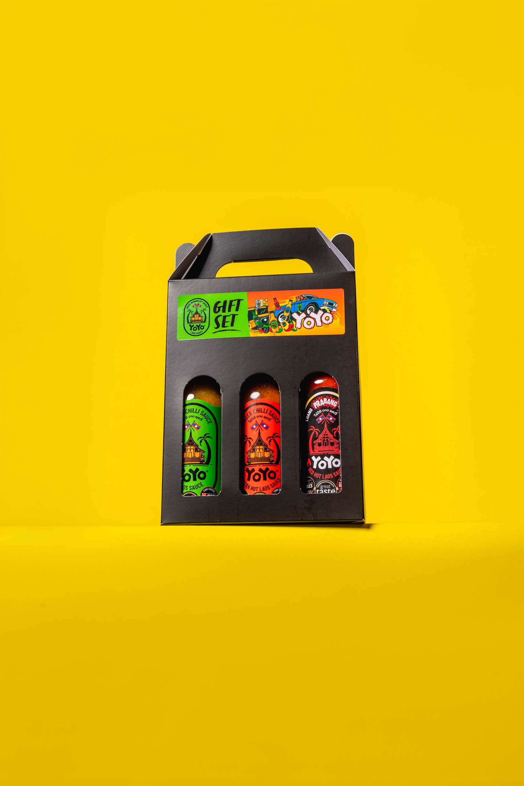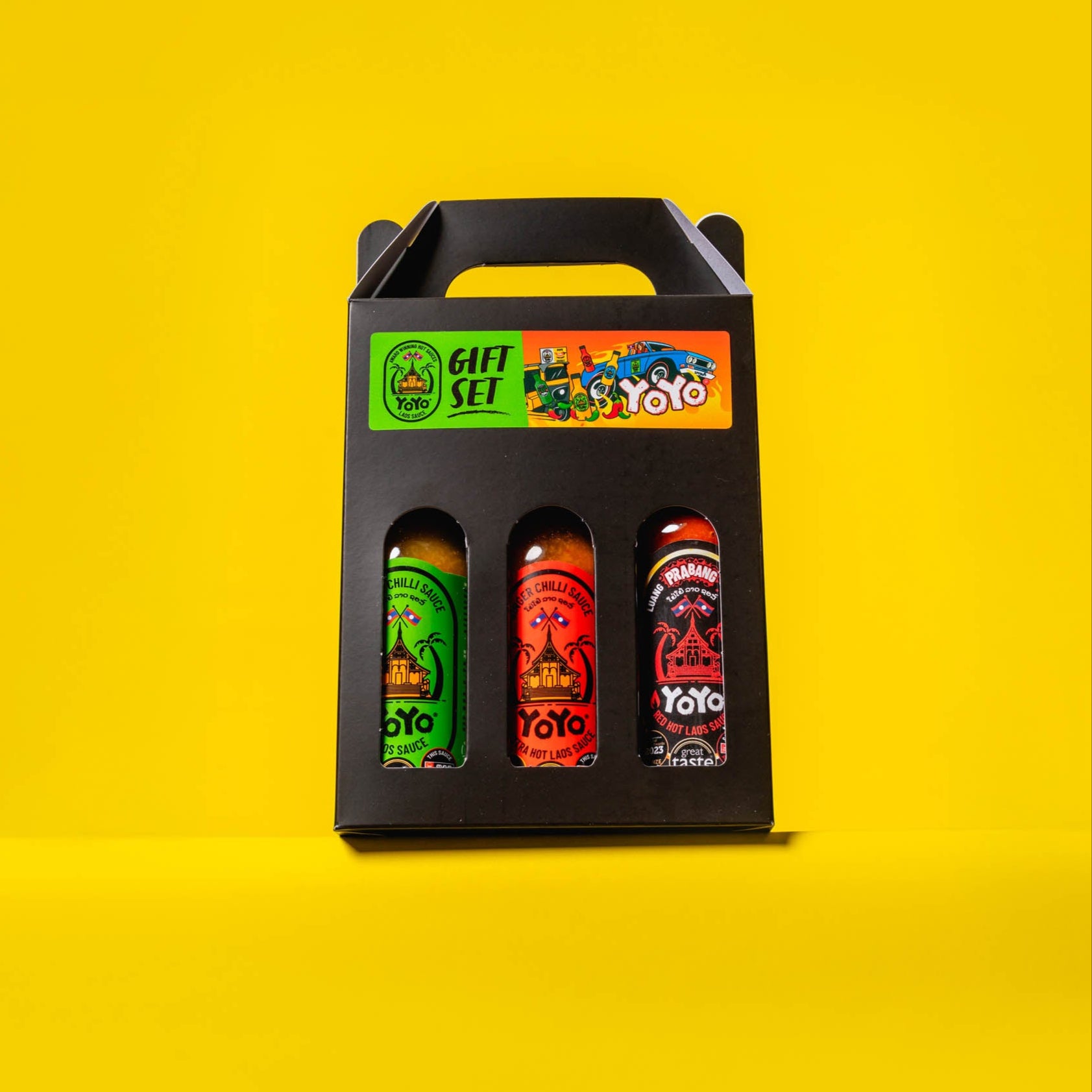 150ml Original, Extra Hot and Luang Prabang Red Hot Laos sauce in a gift box. This set has all my Great Taste Award Winners. My ginger chilli range can be used for dipping, marinade, stir fry or adding to salad. Original is medium to medium hot and extra hot takes the heat up a level. The Luang Prabang special has a mix of chillis which bring out the fruitiness in the sauce as well as heat.